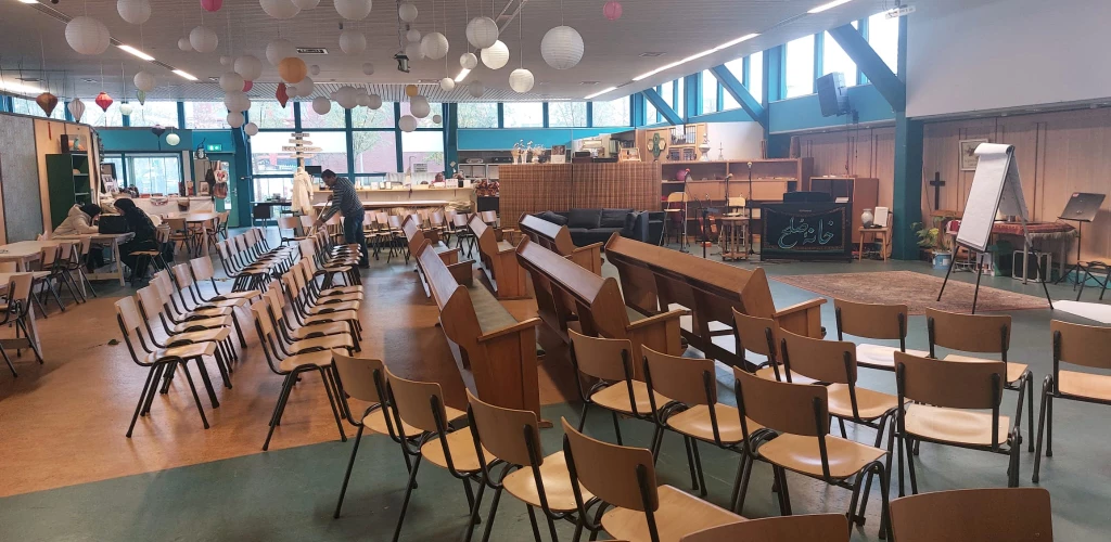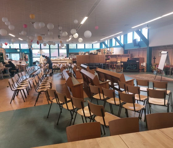 Houd er rekening mee dat Huis van Vrede buurtcentrum een centrum is dat gastvrij wil zijn voor haar bezoekers. Wanneer je dus de grote middenzaal huurt, kan het zijn dat er wel eens iemand binnen komt lopen.