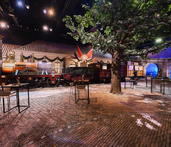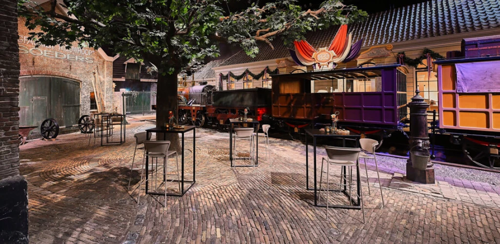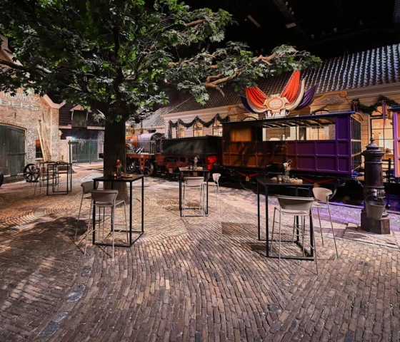 Ga mee op een reis door de tijd! Met een oude mijnwerkerslift daal je 150 meter af en stap je uit in de 19e eeuw, in een wereld vol stoom. Wandel langs de oude werkplaats naar het perron van station d'Eenhonderd Roe. Daar staat de eerste stoomlocomotief van Nederland, de Arend, gereed voor vertrek. Dit pronkstuk van het museum vormt samen met de grote binnenplaats een prachtig decor, waarmee je alle verwachtingen van je gasten overtreft!