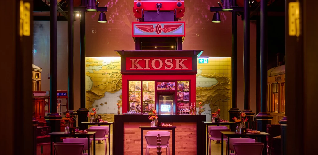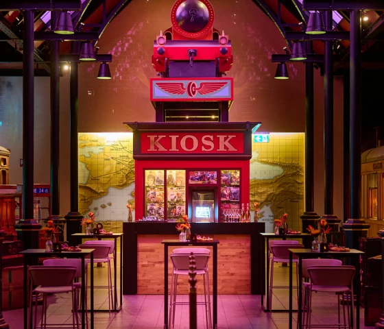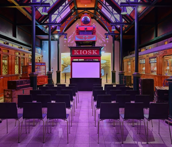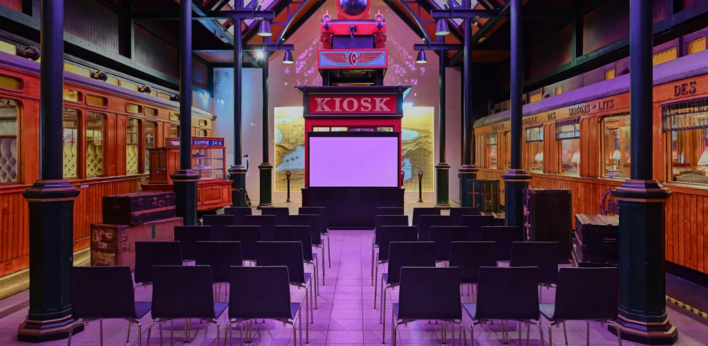 Het perron in Parijs, waar de Oriënt Express op het punt staat te vertrekken, is een mooie plek voor exclusieve receptie. Voor een sfeervol zittend diner is het geschikt tot 80 personen. Er kan een verrassend wow-moment worden gecreëerd door de deuren naar het perron gesloten te houden, totdat de catering klaar is met het indekken van het diner. Aangrenzend aan het perron betreed je het theater.