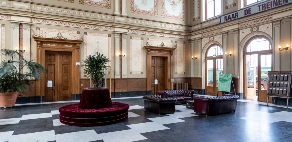 Het Maliebaanstation is een van de iconische gebouwen van Utrecht en het entreegebouw van het Spoorwegmuseum. De sfeer van de Nederlandse Spoorwegen is meteen voelbaar bij binnenkomst in dit rijksmonument uit 1874. De indrukwekkende kroonluchters, het hoge plafond, de marmeren vloer en beschilderde wanden vormen een sfeervolle ambiance voor een royale ontvangst.