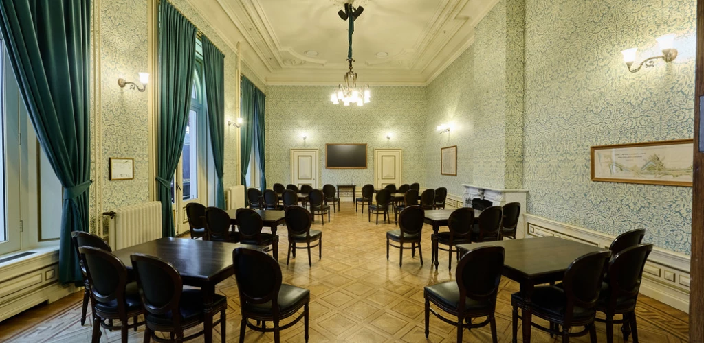 In deze luxueuze ruimte wachtten ruim 100 jaar geleden 1ste klas reizigers op de komst van hun trein. De houten vloer, de bijzondere schouw en de barokke wandbekleding maken het tot een intieme ruimte voor een vergadering of borrel tot 60 personen. Maar een kleiner gezelschap voelt zich ook thuis in deze ruimte. Het is intiem en voelt niet te groot. De wachtkamer heeft uitzicht op de trein aan het perron en geeft daarmee een echt Spoorwegmuseum gevoel. In combinatie met de Goederengang, als cateringruimte, ideaal voor een compacte bijeenkomst. Ook de combinatie met het perron buiten is een mogelijkheid.