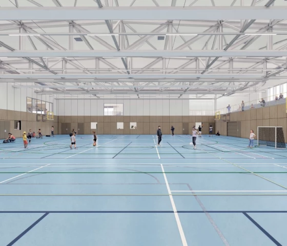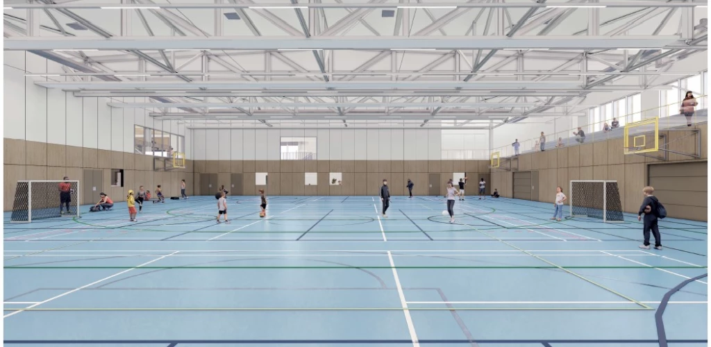 Het te huren object bevindt zich in de nog nieuw te bouwen sporthal Cartesius.