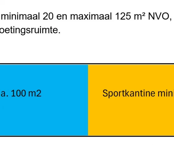 Oppervlakte: 20 m² Netto vloeroppervlakte (horecaloket) (NVO) of extra m² tot 125 NVO (sportkantine)